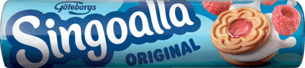 Singoalla Original är en underbart god och klassisk kaka som lanserades redan 1964. Det har sedan dess varit ett älskat kex med sin perfekta balans mellan syrlighet och sötma. Spröda mördegskex med fruktig hallonfyllning och kräm med vaniljsmak. Fylld med smak av svensk sommar! Kakorna är veganska och bakade utan palmolja.